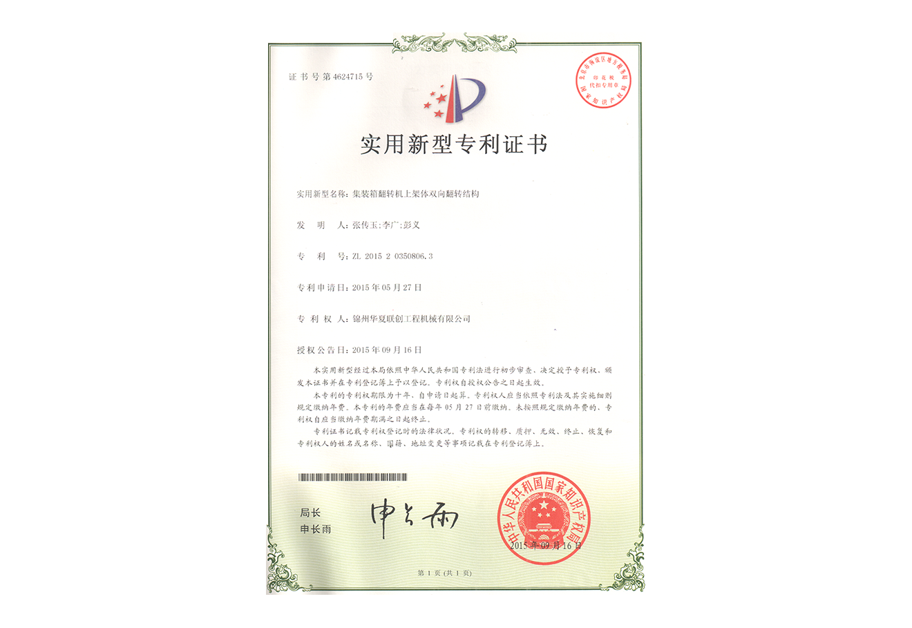 華夏聯(lián)創(chuàng)集團(tuán)創(chuàng)始于2005年,憑借公司品牌優(yōu)勢、技術(shù)優(yōu)勢、人才優(yōu)勢、資金優(yōu)勢,以數(shù)十年磨一劍的博觀約取、厚積薄發(fā),自主研制生產(chǎn)具有先進(jìn)水平的集裝箱翻轉(zhuǎn)機(jī),翻轉(zhuǎn)平臺,智能化液壓翻板汽車裝卸。為用戶提供各種集裝箱裝卸設(shè)備、火車集裝箱、船舶裝卸機(jī)等自動裝卸設(shè)備。公司逐步形成了以工程機(jī)械為核心、擁有自主知識產(chǎn)權(quán)、在國內(nèi)具有一定影響力的企業(yè)。華夏聯(lián)創(chuàng)公司自成立以來,產(chǎn)品銷量持續(xù)高速增長,實(shí)現(xiàn)了跨越式發(fā)展,已經(jīng)成為行業(yè)知名品牌。